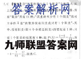 5.C【程析】设“该重卦至少有2个阳芝”为事件A。从上排到下排,每排有阳交和阴交两种选挥,共6排,所有重卦”共有64种;“该亚卦至少有2个阳交”的对立事件耳是“该重卦被有归芝或只有1个阳交”,其巾,没有阳交(即6个全部是阴交)的情况有1种,只有1个阳交伦情况有6种,故PA》=后-高所64以该重卦车少有2个阳交的概书是P(4》=1一P(A)一选C53