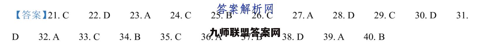 【答案】21.C22.D23.A24.C25.B26.C27.A28.D29.C30.D31.D32.A33.C34.B35.C36.A37.B38.D39.A40.B
